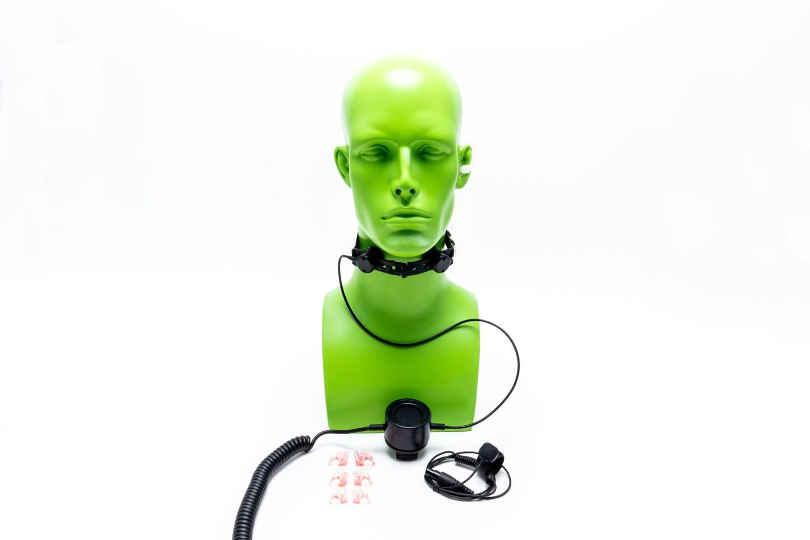 Transmit radio communications via the vibrations in your vocal cords with the Impact heavy-duty throat radio. Includes dual throat transducers for clearer sound, an oversized PTT (Push-to-Talk), ring-finger switch and molded ear inserts. The PTM-1 radio throat mic is fully submersible and chemical resistant, with high-quality components and a multi-adjustable throat band.