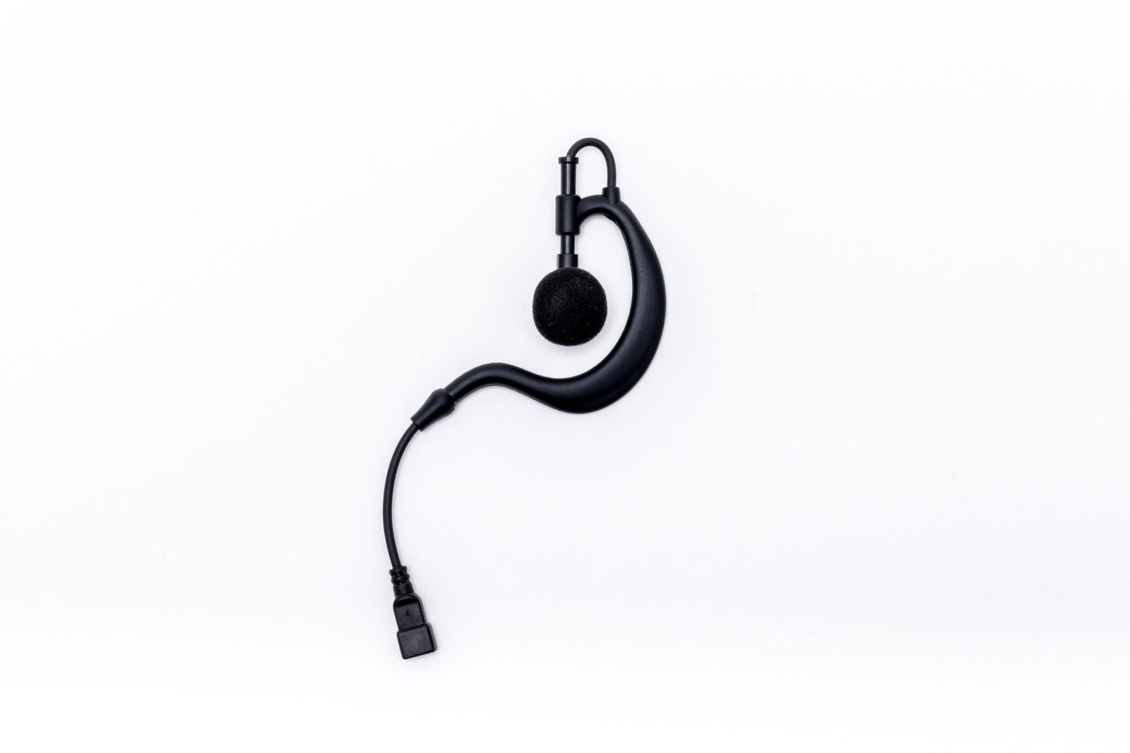 Soft, adjustable rubber ear hook for comfort and flexibility