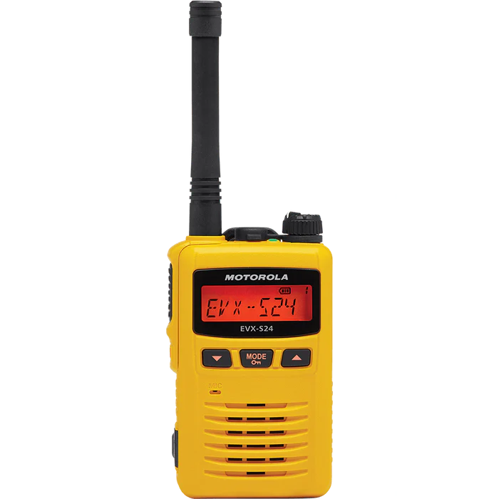 Introducing the TDMA Digital/Analog UHF 403-470MHz 3-Watt Motorola EVX-S24 Radio. It comes complete with a 56557 lithium-ion battery, belt clip, antenna, rapid charger, and warranty for your peace of mind.