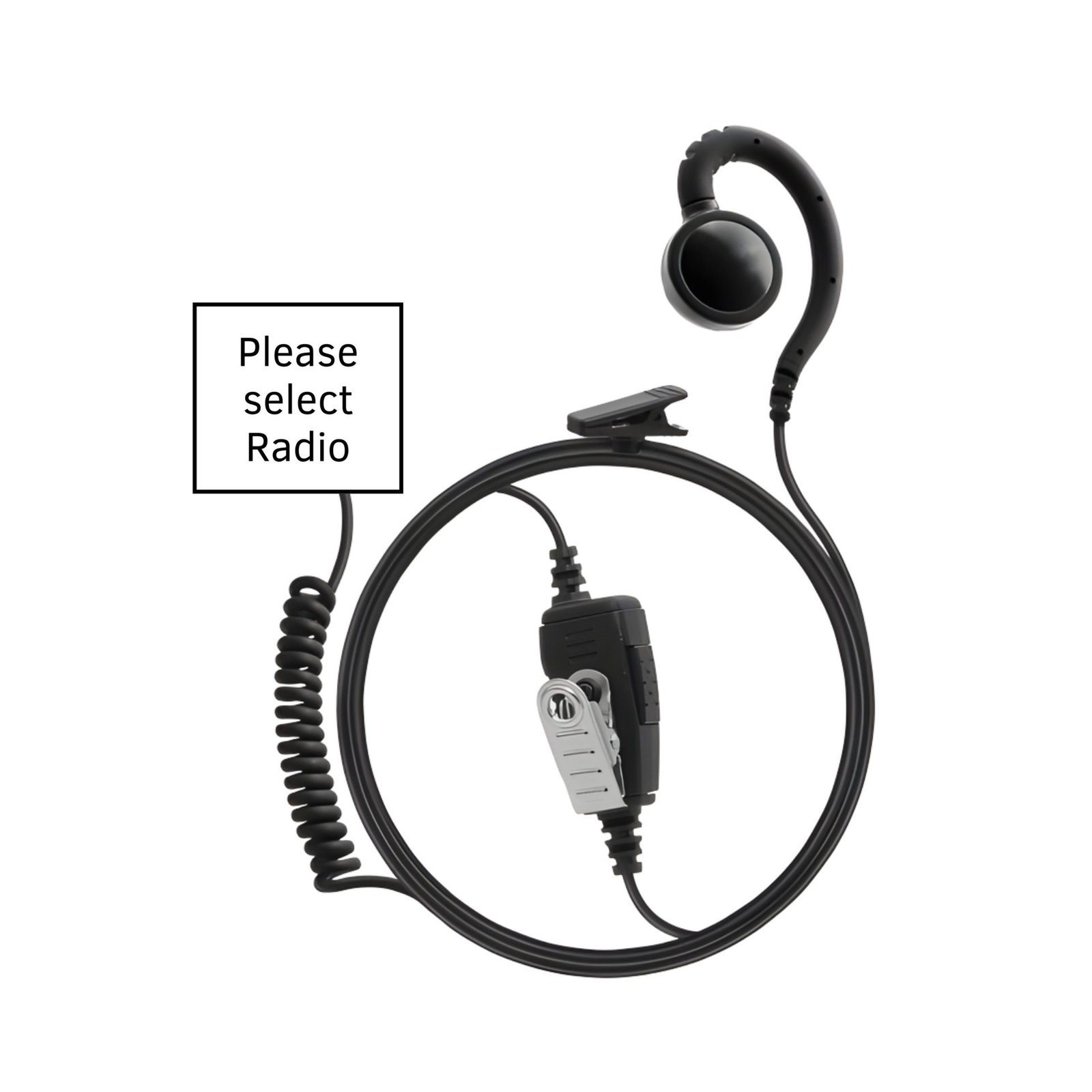 N2W 1 Wire Swivel Retail earpiece, Small inline PTT/Mic. Coiled resin bottom cord
