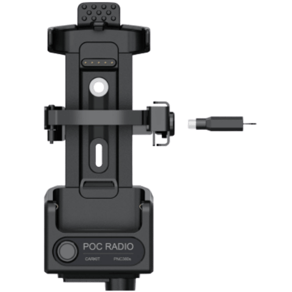 The CK10 CAR KIT is a rugged bracket assembly that enables the PNC380S to be installed on a vehicle dashboard. The CAR KIT provides safe and legal mobile operation and can be easily removed for handheld job-site communications. The CAR KIT includes a locking bracket to ensure drivers who work inside the vehicle using the radio as a dash-mount mobile radio and not a handheld device. The CAR KIT has an on/off button for power, and ports for external speakers, microphones, and push-to-talk buttons. The CAR KIT also functions as a docking charger for the PNC380S.