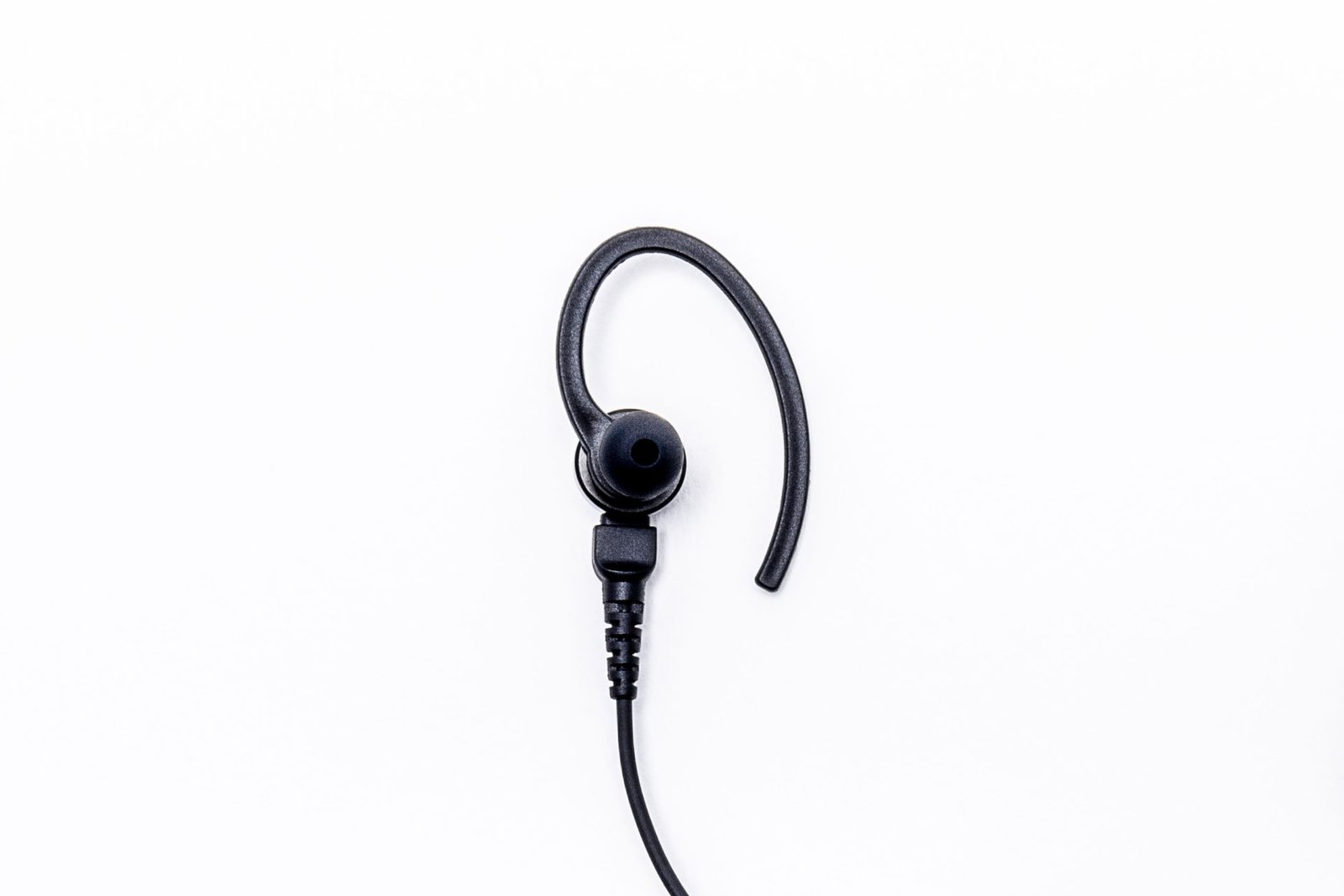 - Hardwired to Ear Hook with In-Ear Bud Earpiece