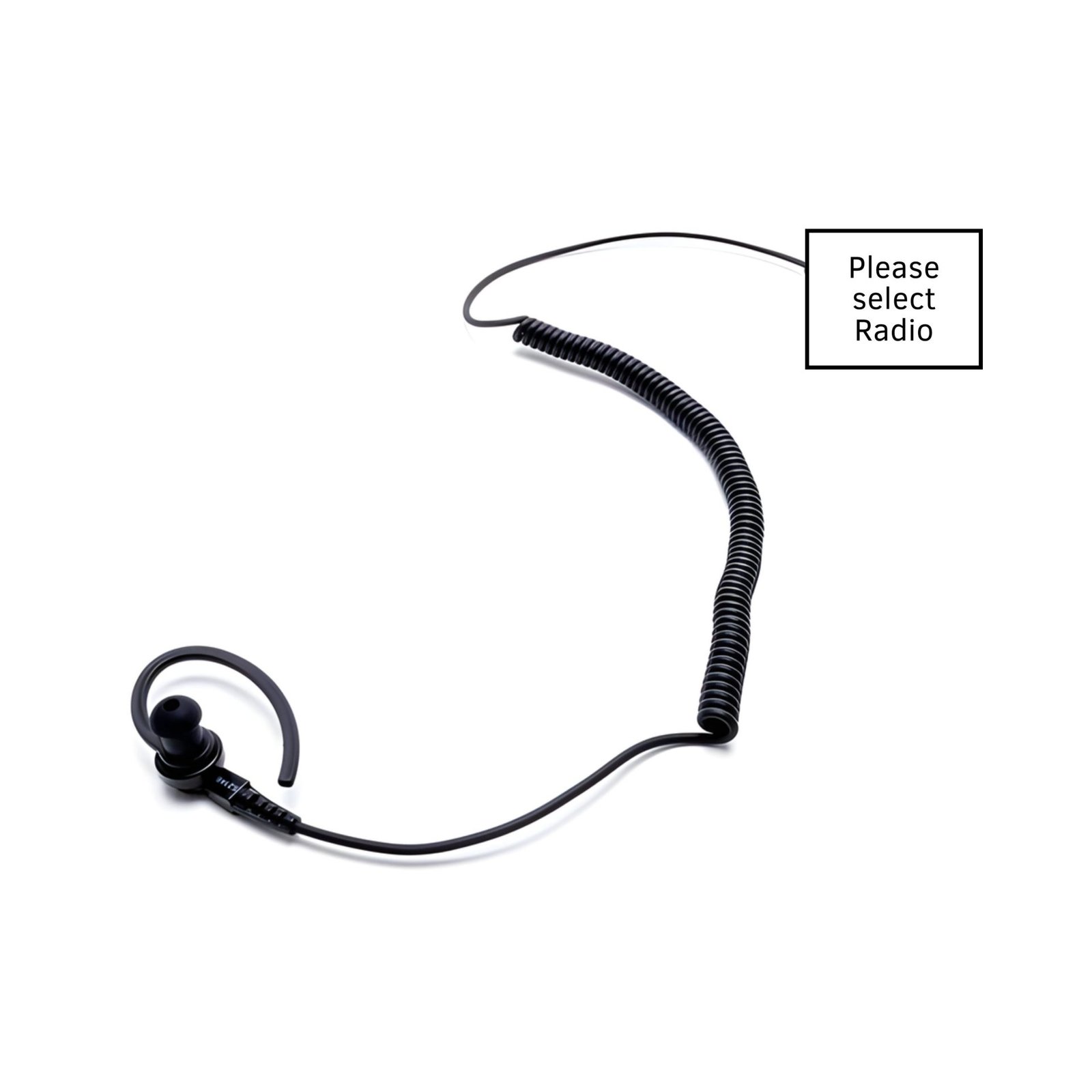 - Hardwired to Ear Hook with In-Ear Bud Earpiece